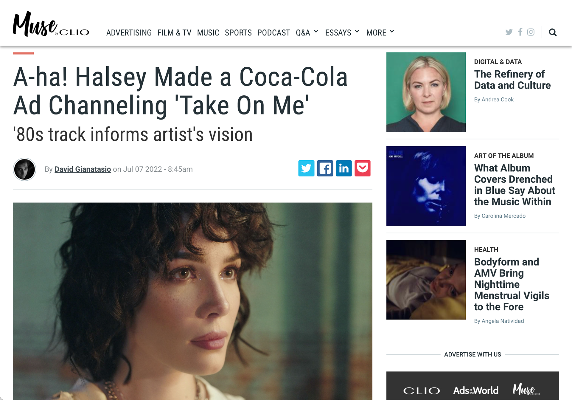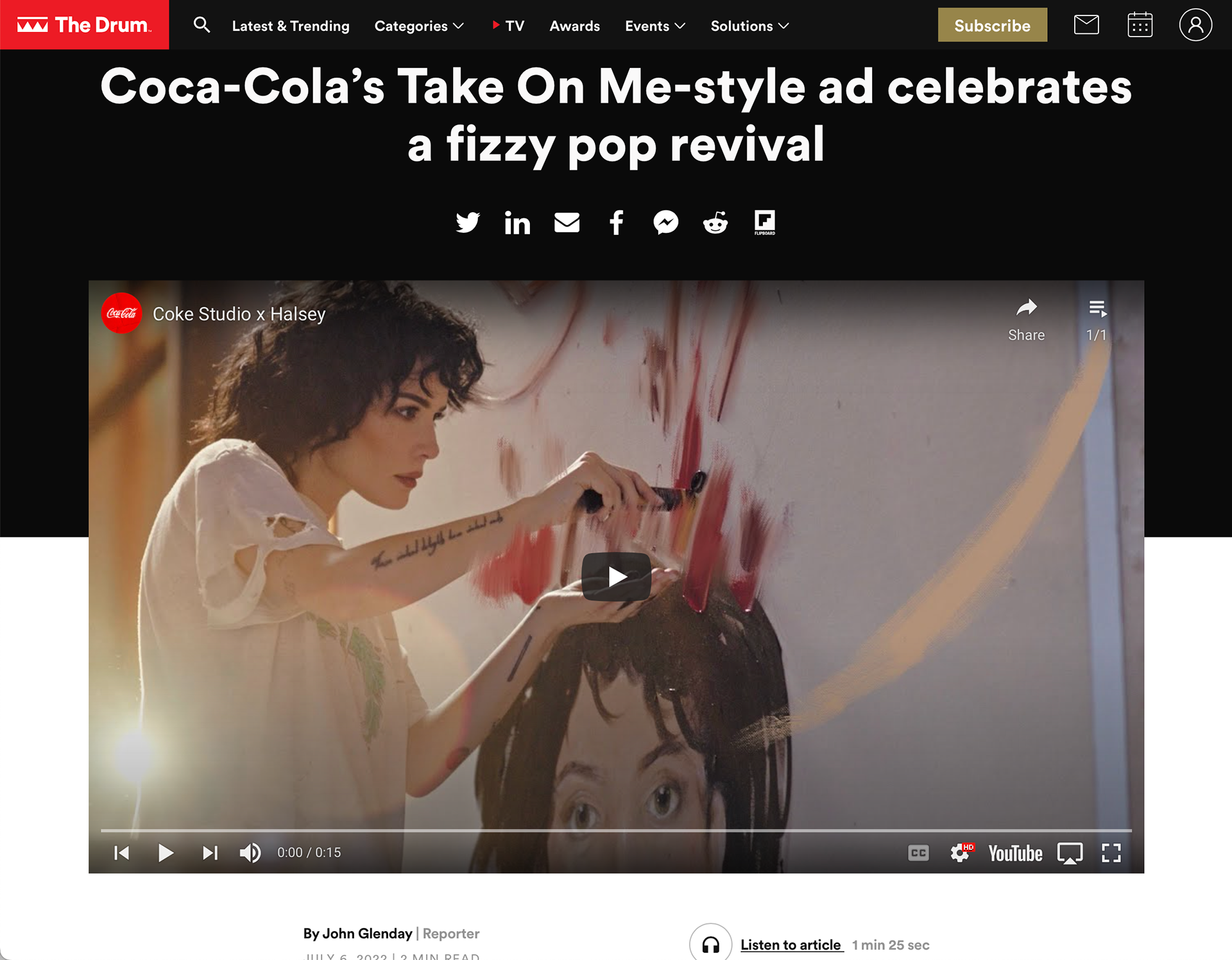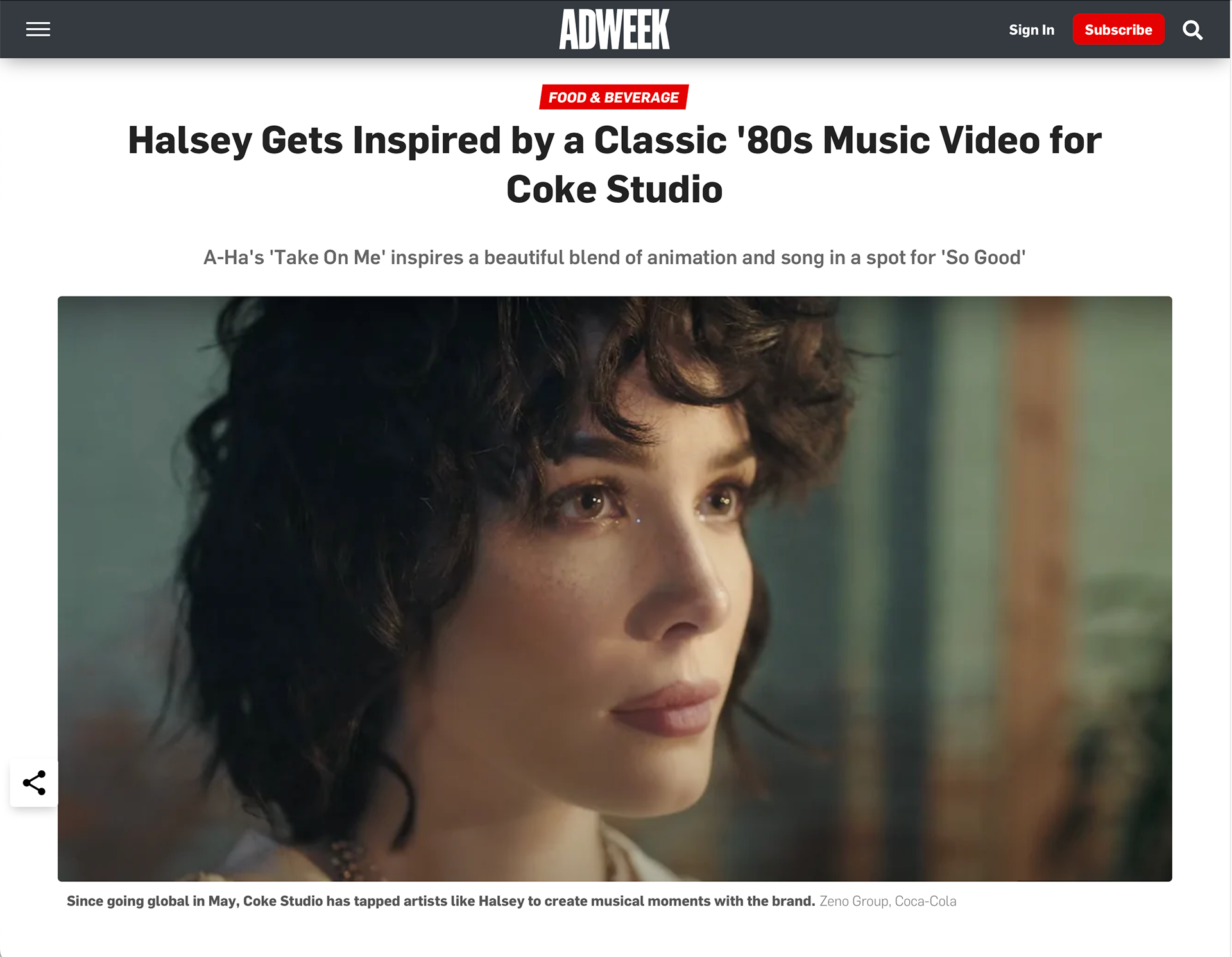 Coke studio teamed up with musician Halsey to release a new video for her song "So Good". The semi-animated work, inspired by A-ha's iconic "Take On Me" music video from the 80s, focuses on Halsey's artistic process.